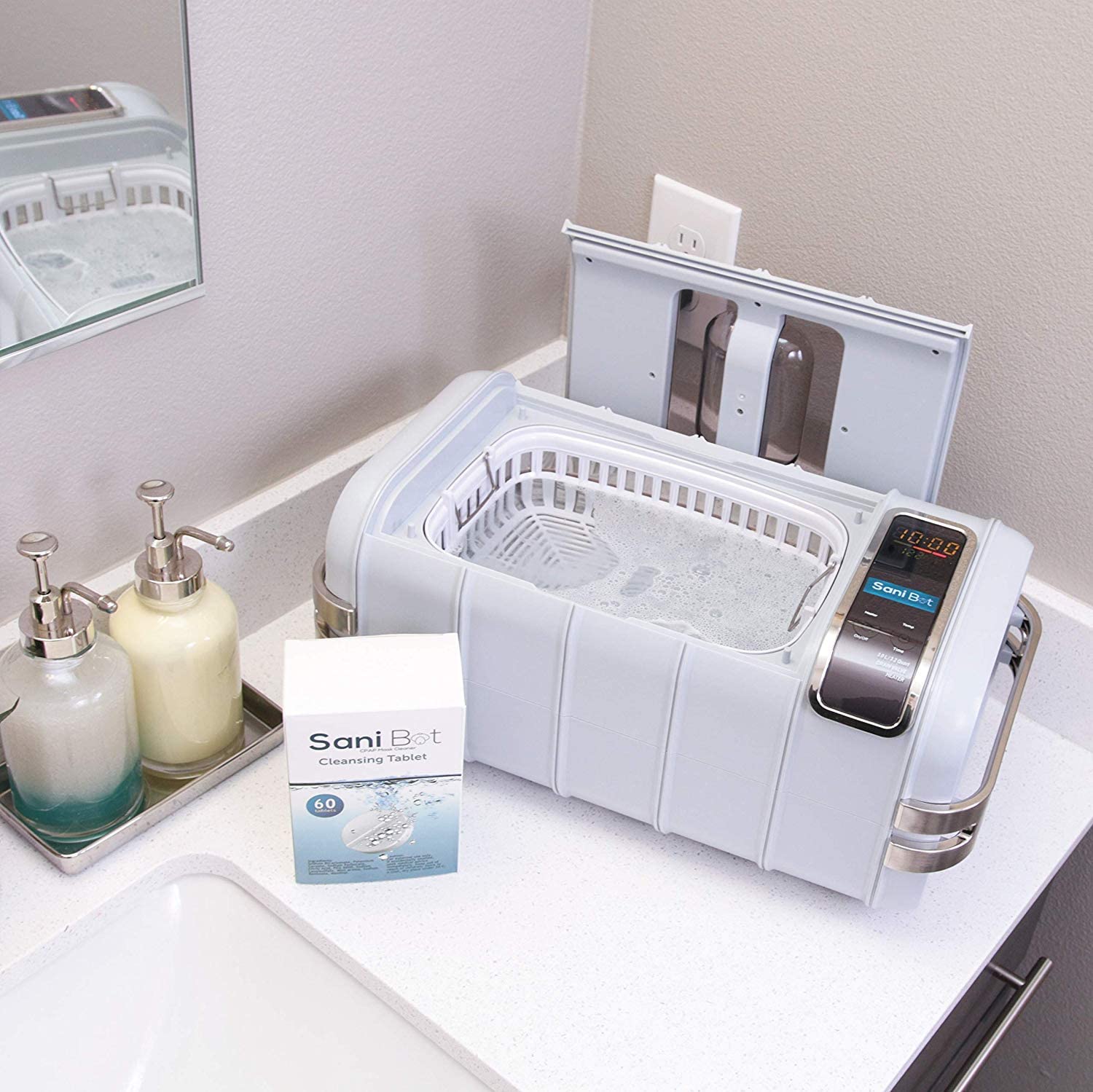 - MAINTAIN PROFESSIONAL CLEANING AT HOME: Sani Bot's D3X efficient CPAP apparatus cleaner utilizing the cleansing power of ultrasound, water and powerful SaniTabs tablets to deliver heavy duty cleaning within the comfort of your own home. It removes dirt, debris, oils and other organic residue, fast and effortlessly, without leaving any unpleasant odors.